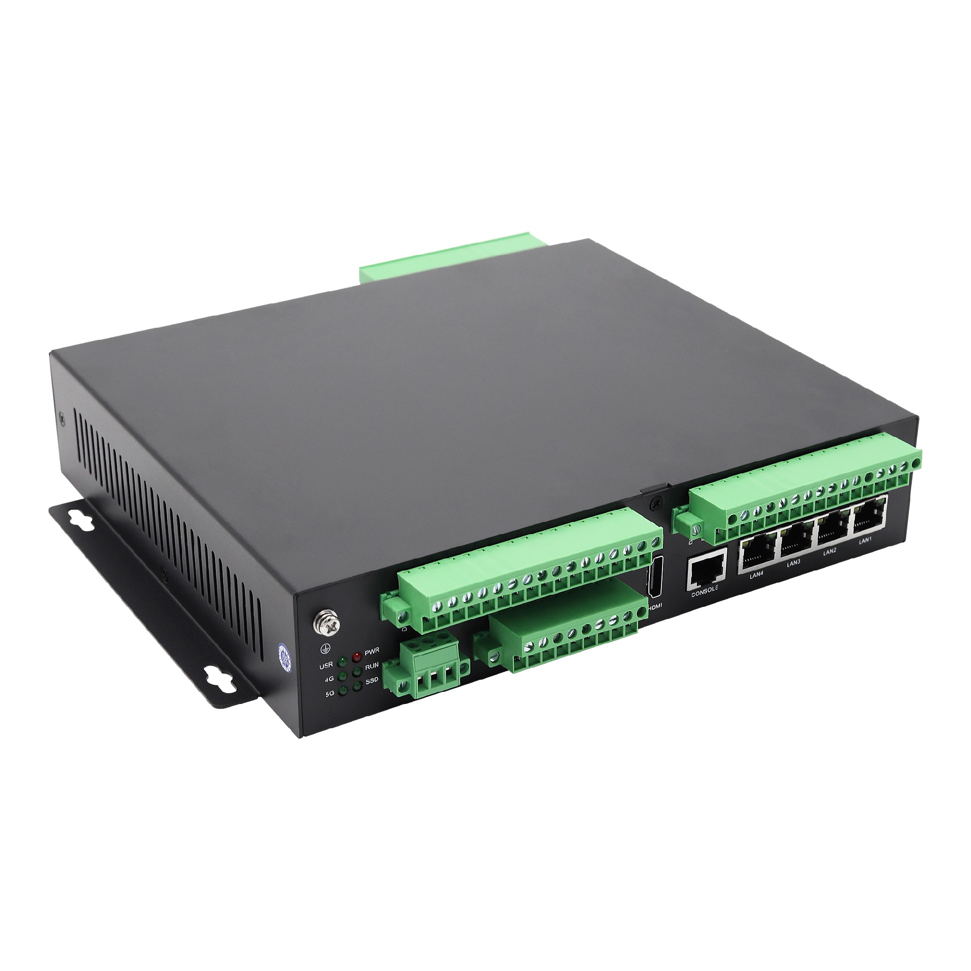 | 指示燈 | 6路,PWR電源指示燈,常亮為電源正常,RUN系統運行狀態燈,閃爍為系統正常,SSD狀態燈,常亮為SSD運行正常,5G運行狀態燈,4G運行狀態燈,USR用戶自定義狀態燈 |