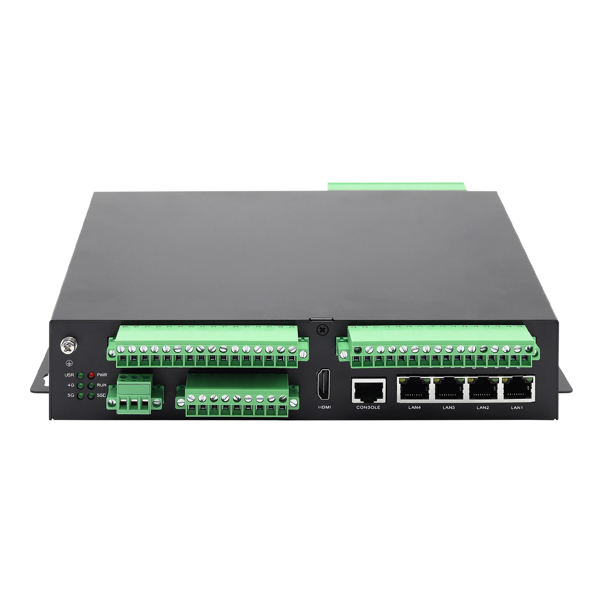 工業接口:4x RJ45、1x5G、4xRS-485、2xRS-232/485、16xDI、8xDO、3xCAN、1xSSD硬盤接口 、1x SIM卡接口、1xHDMI、2x USB、1x Console