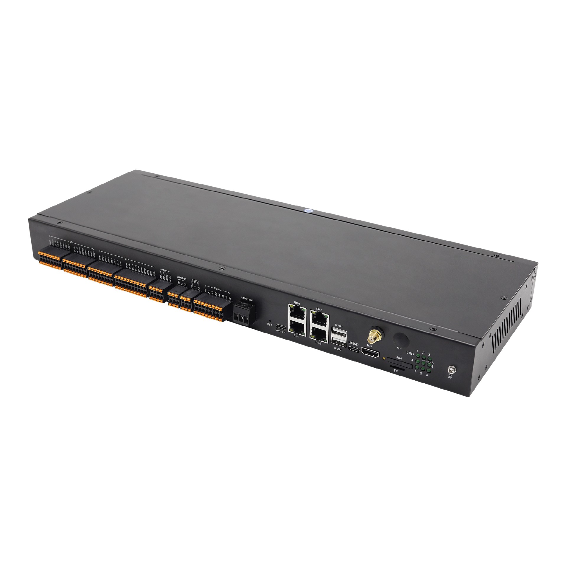 工業(yè)接口:1x4G、4x RJ45、18x DI、16x DO、3x CAN、4x ADC 、8x RS-485、2x RS-232、3x USB、1x Console、1x SIM卡接口、1x TFT卡接口、1xSSD硬盤接口